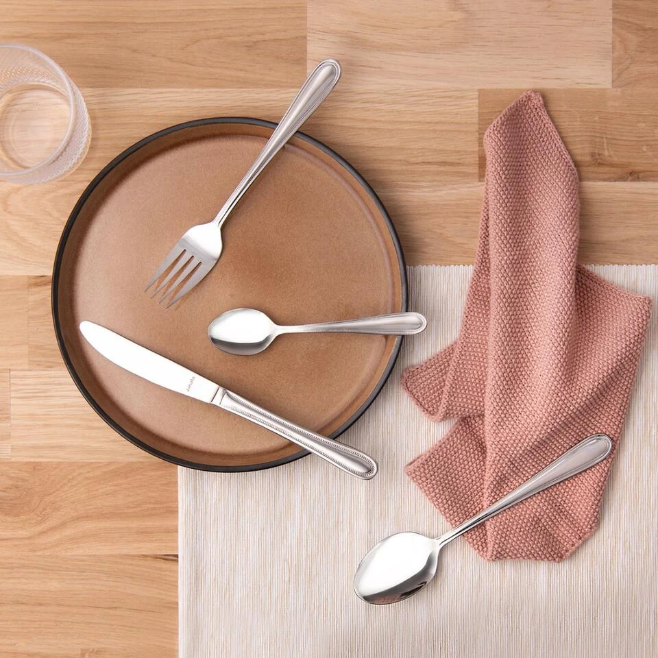 Elke gedekte tafel ziet er nog mooier uit met deze Pearl bestekset van Amefa. Deze eigentijdse bestekset bestaat uit 24 roestvrijstalen onderdelen: 6 tafelmessen, 6 tafelvorken, 6 eetlepels en 6 medium theelepels. Het elegante ontwerp gaat terug naar de zilversmeden in 1700 en lijkt een delicate rij parels te vertegenwoordigen. Elke Amefa set is vaatwasmachinebestendig en het roestvrij staal biedt een hoge corrosieweerstand. Amefa bestek is een prachtige aanvulling op elke eetgelegenheid en is de ideale combinatie met ander bestek.
