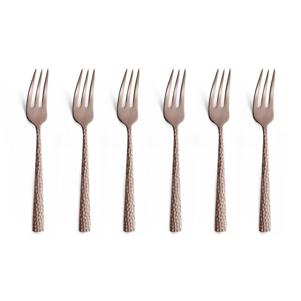 • 6 Gebaksvorkjes <br><br>Dit bestek is gemaakt van de beste kwaliteit roestvrij staal en is afgewerkt met een dunne, voedselveilige titanium coating die zorgt voor een levendige kleur.<br><br>