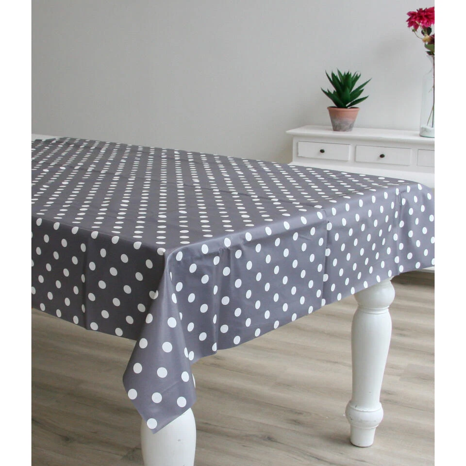 Bellatio Design Tafelzeil – Grijs En Stippen Wit – 140 X 220 Cm