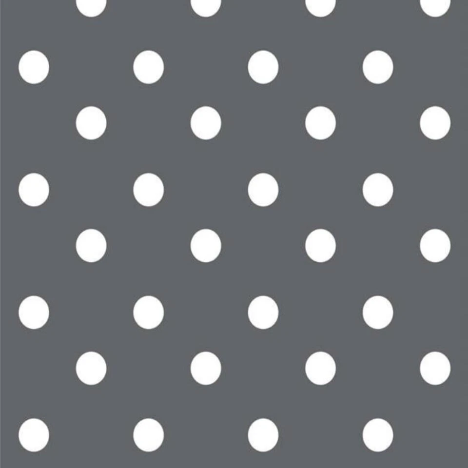 Tafeldecoratie zeil in grijs met witte polkadots stippen print. Afmeting: 140 x 220 cm. Het tafelzeil valt het mooiste rondom een tafel van 100 x 180 cm, zorg bij een grotere tafel voor een minimale overhang van 10 cm aan alle zijdes. Materiaal: PVC met zachte non-woven vliesrug. 100% waterdicht en valt soepel rondom de tafel. Enkel afnemen met een vochtige doek, geen schoonmaakmiddel gebruiken dit zal de print aantasten. Langdurige blootstelling aan diverse weersomstandigheden zal de print ook aantasten en/of doen verkleuren. Geschikt voor zowel binnen als buitenshuis.