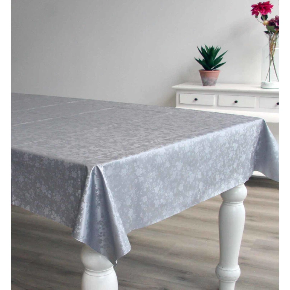 Bellatio Design Tafelzeil – Zilver – Bloemen Print – 140 X 250 Cm