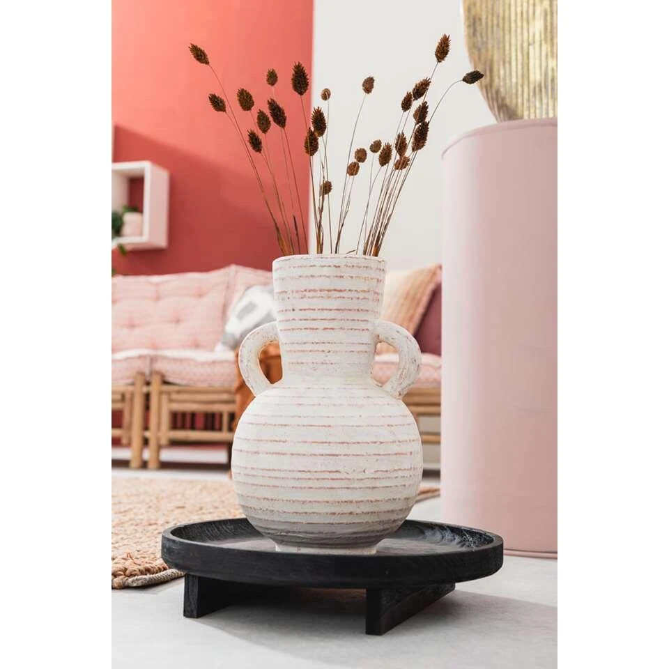 Dienblad Xean is perfect om een extra touch aan je interieur te geven. Het dienblad zelf is al prachtig om te zien, maar je kunt het zo persoonlijk decoreren als je wilt.Zet er bijvoorbeeld theelichthouders, kaarsen of vaasjes op om het dienblad compleet te maken. De afmeting van het dienblad is 7xØ35 cm en is gemaakt van hout.