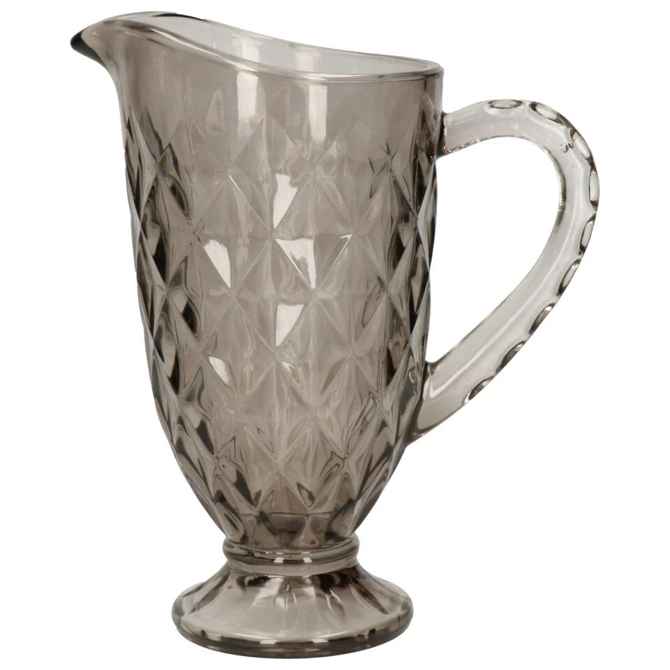 Excellent Houseware – Karaf/schenkkan 1L – 6 Drinkglazen – 250ml – Glas – Grijs