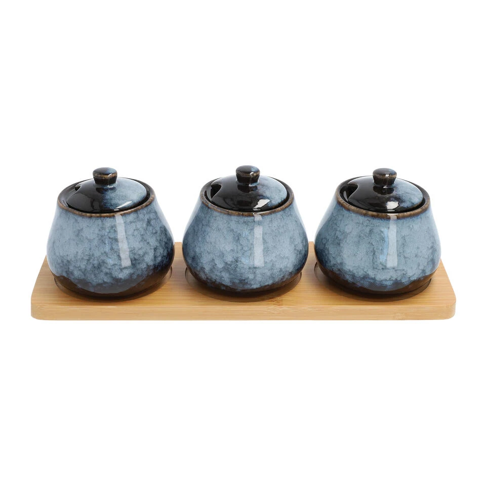 Zoek jij praktische voorraadpotjes die er ook nog eens leuk uitzien? Dan zijn deze Krumble voorraadpotten op plank een goede keuze. De blauwe keramieken voorraadpotten staan op een houten plank. Het bruin van het hout contrasteert schitterend met het blauw van het keramiek. De drie potjes hebben allemaal een inhoud van 250 milliliter. Dat maakt ze ideaal voor bijvoorbeeld suiker of losse thee. Weet jij al waar jij deze voorraadpotten mee vult?