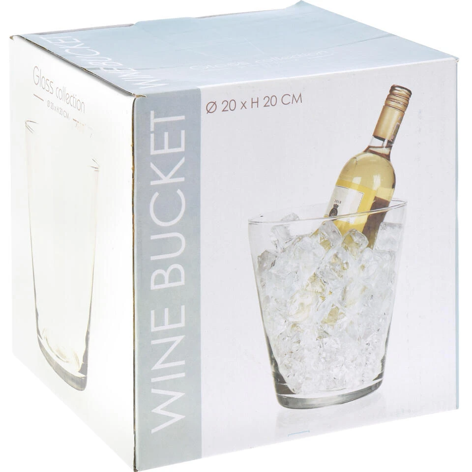 Wijnfles koeler/wijnkoeler transparante glas 19 x 20 cm. Handige drankenkoeler voor flessen wijn of champagne. Afmeting: 19 x 20 cm. Kleur: transparant. Materiaal: glas.