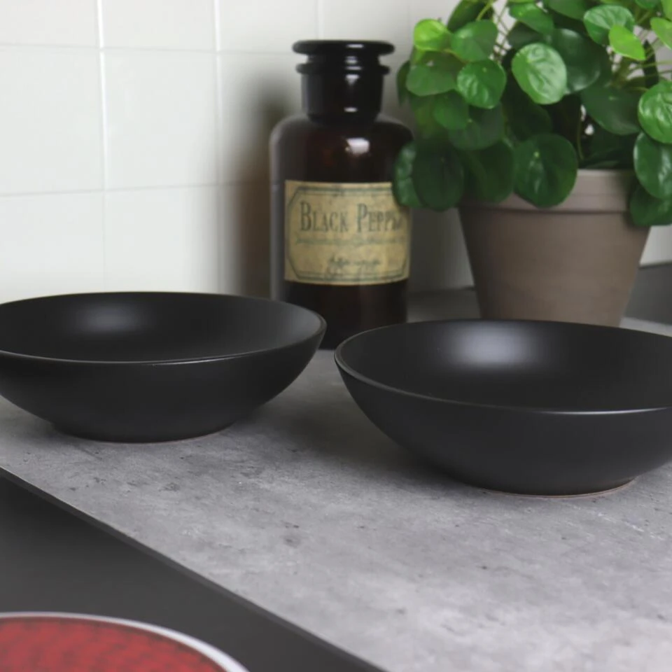 Deze Orange85 borden set bestaat uit 6 diepe borden. De diepe borden zijn mat zwart en gemaakt van aardewerk. De diameter van de borden is 20,5 centimeter. De borden zijn diep en geschikt voor pastagerechten of soep.