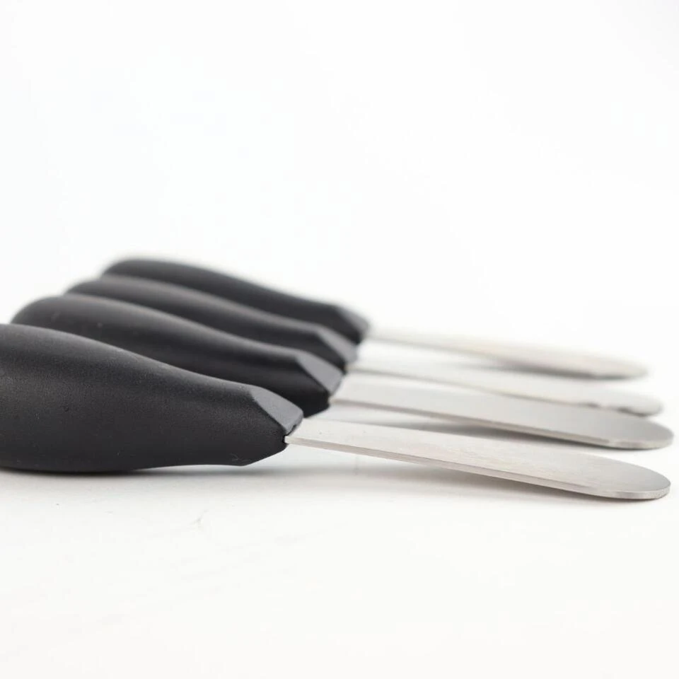 Deze Orange85 mesjes set bestaat uit 4 kleine botermesjes. De mesjes hebben een lengte van 12,5 centimeter. Het materiaal van het handvat is kunststof en het materiaal van het handvat is staal. Het mesje is vaatwasser bestendig.