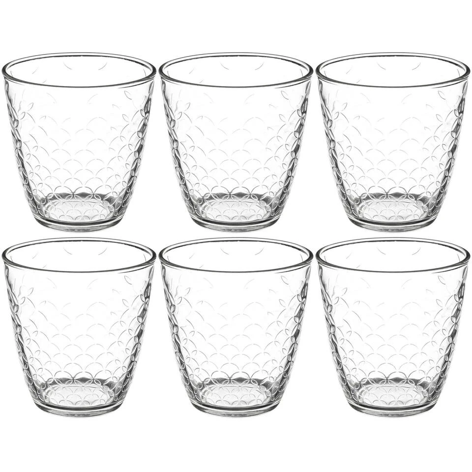 Set van 6x stuks water/sap glazen 250 ml. Afmeting: ca. D8 x 8,5 cm, diameter onderkant ca. 6 cm. Inhoud: ca. 250 ml/25 cl. Gewicht per glas: ca. 165 gram. Materiaal: glas. Reinigen: vaatwasser geschikt. Serie: Rome.