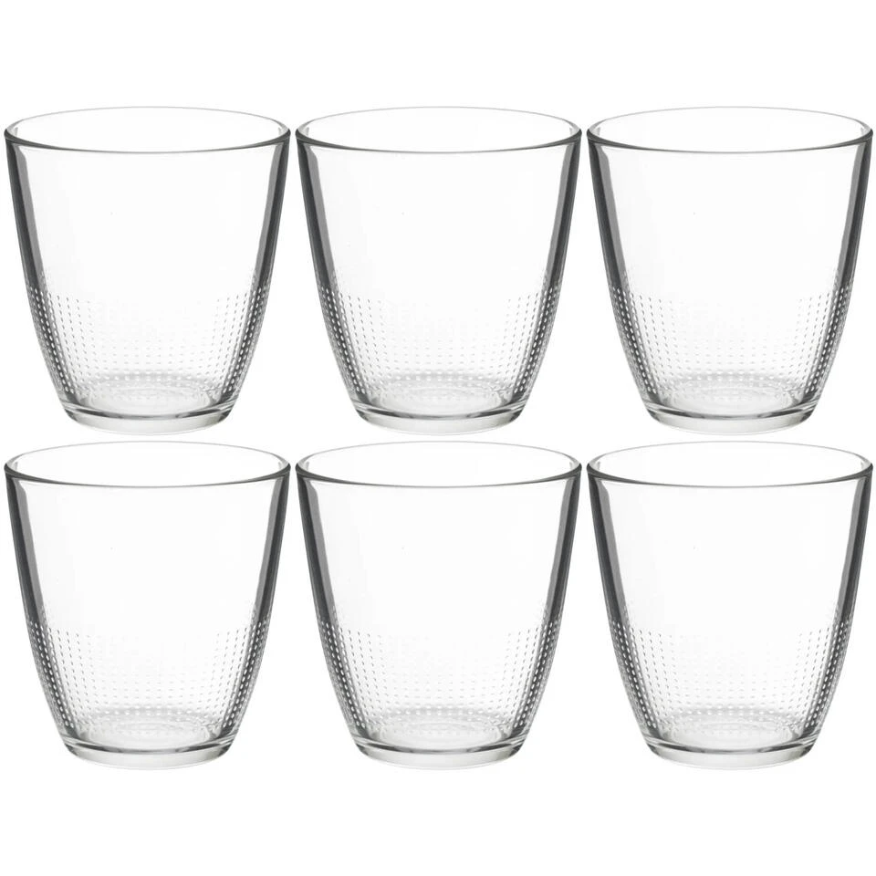 Set van 6x stuks water glazen 250 ml. Afmeting: ca. D8 x 8,5 cm, diameter onderkant ca. 6 cm. Inhoud: ca. 250 ml/25 cl. Gewicht per glas: ca. 165 gram. Materiaal: glas. Reinigen: vaatwasser geschikt. Serie: Claudi.