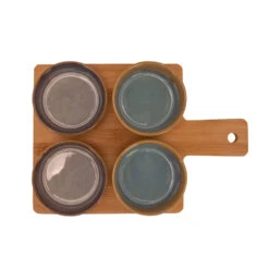 Cosy & Trendy Serveerplank – Acacia – 32 X 11 Cm – Met 3x Keramische Schaaltjes