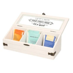 Excellent Houseware Theedoos – Hout – Wit – 3-vaks – 24 X 9 Cm