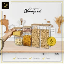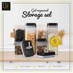 LW Collection Voorraadpotten 6 Stuks Met Stickers Zwarte Deksel