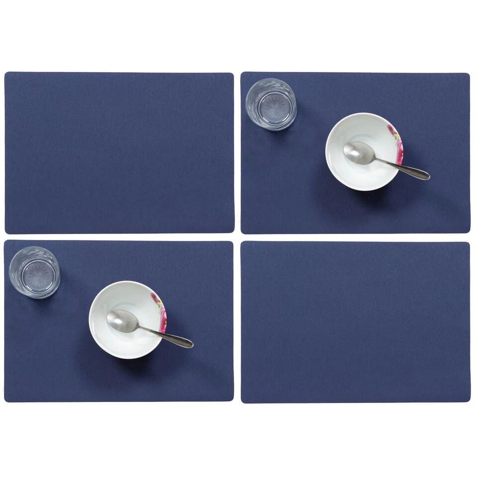 Stevige luxe Tafel placemats Plain donkerblauw 30 x 43 cm. Met anti slip laag. Materiaal is katoen/polyester met Teflon coating. Goede water en vlek bestendigheid.