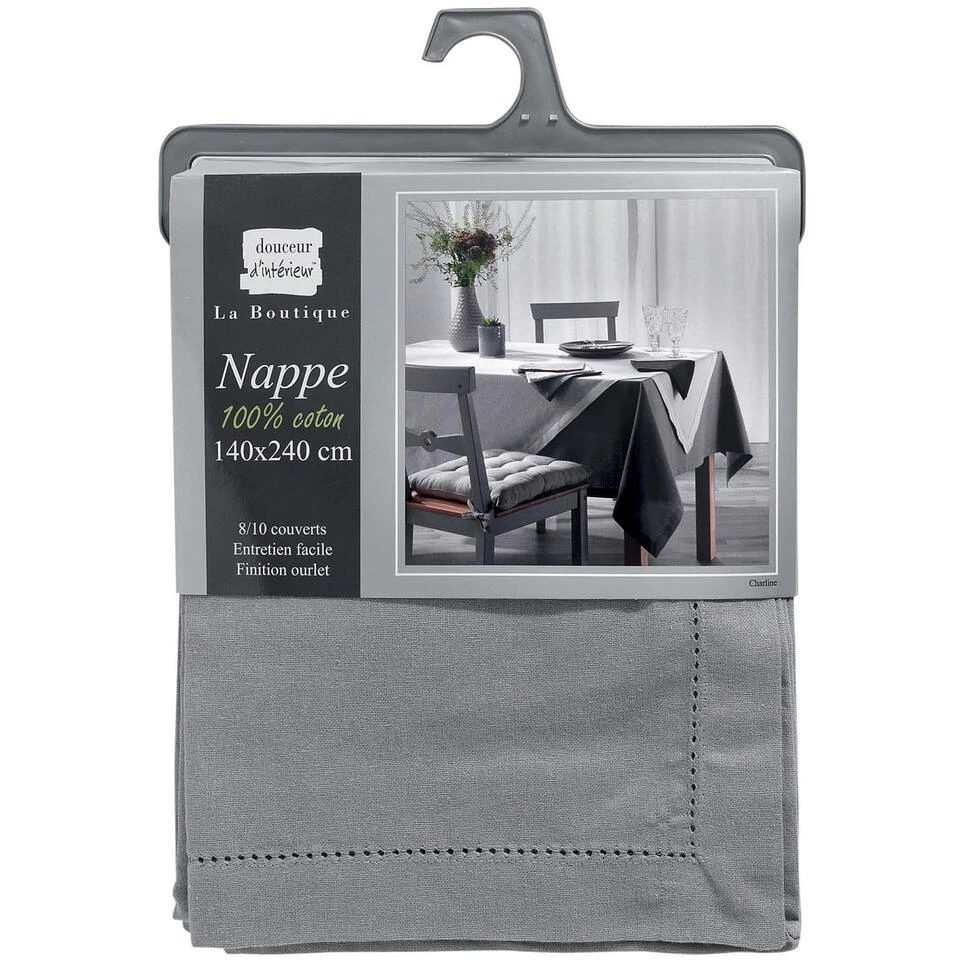 Lichtgrijs tafelkleed van katoen met formaat 140 x 240 cm. Het tafelkleed is mooi afgewerkt aan de randen en op 30 graden wasbaar.