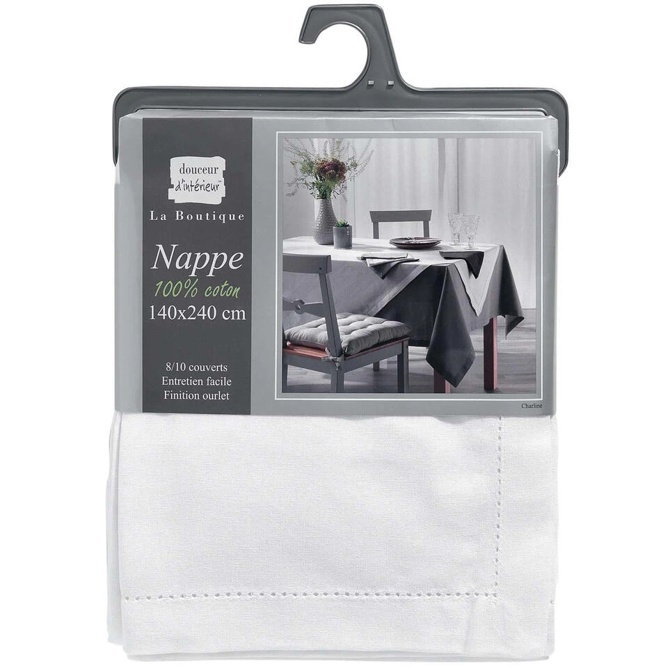 Wit tafelkleed van katoen met formaat 140 x 240 cm. Het tafelkleed is mooi afgewerkt aan de randen en op 30 graden wasbaar.